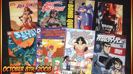 I Was Kidnapped By Lesbian Pirates From Outer Space #3 ~ The girls have crashed on an uncharted planet, leading to all manner of goings-on - Marge and Velma get sent out to explore, bickering all the way, the adorably kooky Dr. Wendy is seeing to Susie, and the Captain is her amusingly impulsive and commanding self throughout. Meanwhile we check back in on Male Man, and meet his 'sexy personal assistant', the long-suffering Betty; the two of them set a course to rescue the stranded pirates, since Male Man's to dim to realise who they are. This title's webcomic heritage shows through, with most pages having a punchline somewhere on them - the Gaydar's various contributions to the story steal the show, although any scene with the Captain and Wendy together comes pretty close for comedy value, and Susie's nascent attempts at constructing a lesbian fantasy are pretty hilarious. The Diamond info on this title is being a bit quirky, with issues appearing and disappearing from shipping schedules - I hope they get their act sorted out, I'd hate to miss an issue. By the way, over at the I Was Kidnapped By Lesbian Pirates From Outer Space website, as well as all six issues and various other goodies, there's a comic starring Alice and Wendy in progress.