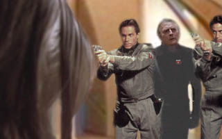"That's enough," Tyrell said, his voice steely. He fired a shot toward the projection device, shorting it out. It flicked but it never diminished completely. Tyrell then aimed the pistol back it at the group. "To the detention block!"