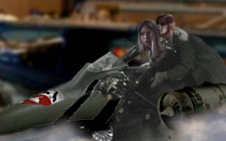 "Eep!" Jocasta yelped as Sean dragged his skimmer up and out of the line of fire, passing so closely above her and Katherine that the skimmer's cowling almost caught the tips of her hair. Her face radiated nausea as Katherine pulled the cycle up after him, spinning almost on the spot to follow the damaged skimmer.