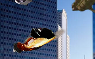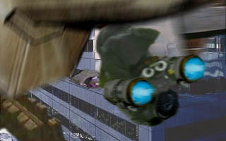 Jocasta risked a peek, and gulped as she saw the corner of a skyscraper flash past barely two meters from them. Up ahead Sean's skimmer was veering around from the end of its turn, and Katherine gunned the cycle's engines, gaining another few meters on it.