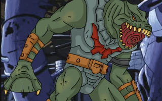 "That's the etherium bore," Tara explained quietly. "Etherium is drawn up from deep underground here, and pumped through those pipelines to a refinery two miles further on. That's where the workers are kept - the bore is entirely automated." "Unmanned?" Willow asked. "No workers," Tara said. "But there'll be a strong contingent of Horde troopers. Because no slaves are needed here, the bore station doubles as the command centre." They ducked and pulled their cloaks over themselves as they heard the engine whine of batmechs on the wind. "So how do we take this place out?" Willow asked in a whisper. "Etherium reacts with some explosives and electric fields," Tara whispered back. "When it's drawn up from the underground reserves it goes into a reinforced chamber first, kind of like a safety tank, so that any accident on the surface won't spread a reaction down underground and collapse the seam they use to get at the reserves. I'll get inside, bring down the security systems, get to the armoury, steal a suitable bomb, drop it into the safety chamber, and then get out before the whole base blows itself to bits." "That's a lot to do," Willow said warily. "What do I do?" "Willow," Tara said, "I know you want to help, but it's too dangerous." "But-" "Willow," Tara repeated. "I can be She-Ra when things heat up. There's no plant life down there, nothing at all - you'd have no weapons and no defences. It's too dangerous, and if I'm going to do this... I need to know you're safe." "We've fought together before," Willow said. "I know," Tara nodded. "But with no magic... Put it this way: if I couldn't become She-Ra, would you let me go in there?" Willow stared down at the base, then gave an exasperated sigh. "Okay, point taken," she accepted, with bad grace. She risked a glance up as a flight of batmechs passed overhead, accompanying a larger craft. "I recognise those markings," Tara said quietly, as the craft descended towards a landing pad on the base. "A xenian called Leech - he must be the commander here." "How dangerous is he?" Willow asked. "I've never seen him in person," Tara shook her head. "All I know is he has some kind of energy draining ability - he drains life-force from people and uses it to replenish his own. I think it's inherent to his species, it's how they feed." She gave Willow's hand a reassuring squeeze. "I'll make sure I stay well away from him. First thing I do will be to knock out the circuits controlling the thermal weapons - that'll make them think Frosta's people are going to attack, and turn all their attention to the main slopes leading down to the base. By the time they realise there's no army coming from outside, I'll have blown the tank from inside." "Okay," Willow said, suppressing her worry. "But I'm coming with you right up to the perimeter. I can keep out of sight there - but I'm not letting you out of my sight for a second longer than I have to. You're sure your access codes will still work?" "Horde officers don't last long by trusting each other," Tara said grimly. "I learned that quickly - I made sure I gained access to all the codes I could, not just the ones I was supposed to know. With luck Hordak won't have overhauled every code in every facility just because I defected." "It's the 'with luck' that bothers me," Willow said. "Make sure you're lucky, okay?" Tara kissed her quickly. "I am lucky," she grinned. ![]() After leaving Willow safely concealed near the base perimeter Tara circled around to the main gate and walked up the ramp. Horde troopers patrolled mindlessly just beyond the razorwire and electromesh barriers; Tara shivered at the sight of them, and summoned up all her anger at what Shadow Weaver's spells had done to her, for so many years. The emotion kept her face in a scowl, and made her body language cold and forbidding. "Force Captain Tara, Special Directorate, Sunder Command," she said at the gate, as the guardian - a special trooper with an ungainly mass of surveillance and recognition hardware mounted on its shoulders and head - moved to bar her way. "Accessing," it said flatly. "Countermand - code indigo, pass-code parallax." Tara fought to keep her composure as the guardian paused, as if hesitating. "Order acknowledged," it said at last. "Identity confirmed." It stood aside, letting a much relieved Tara stalk past it, into the base proper. She wasted no time, ducking into the first doorway she came to, and dredging up her old memories of her time at the base she made her way through its labyrinthine service corridors, towards the security overseer centre. The base had changed in the years since its construction, but only superficially - the main corridors and junctions were as she remembered, and she found her bearings quickly.
