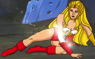 Author: Chris Cook ![]() Tara and Willow crouched beneath an outcrop of ice, a remnant of an iceberg caught tilted at a severe angle when the arctic ocean around it re-froze. Harsh winds swirled around their heavy cloaks, and their breath came out as clouds of vapour - but motionless and hunched over as they were, they were invisible to the metal spy banking lazily through the air above them. "It's just a standard batmech," Tara said softly, glancing up from beneath the edge of her frost-white hood. "Even the Horde doesn't have the resources to deploy more than a battalion of cold-weather batmechs in any one area. They'll be guarding the mine; the standard models do patrol flights. It'll have to move on soon, if they spend too long out their wing joints freeze up." "Just as well," Willow muttered, tugging her cloak tighter around herself. "Much more of this and my joints are going to freeze up." Tara reached across, beneath both their cloaks, and gave Willow's arm a reassuring rub. They watched in silence as the bat-winged machine swooped through a few circles, then flapped to gain height and headed off towards the distant mountains. "Good riddance to that," Willow said, getting to her feet and shivering. "Hell of a way to spend a solstice." "It's out of sensor range," Tara nodded. She tossed her cloak off one shoulder, enough to reach back and draw her sword. The gem set into its blade glowed softly, and Tara herself began to glow, her skin giving off a muted radiance, the clothes she wore beneath her heavy cloak changing and shining bright white and white-gold. She held out an arm for Willow to "Better?" the blonde asked, as her transformation to She-Ra completed. "Much," Willow nodded, working an arm around She-Ra's waist as they set off again across the ice. |