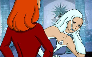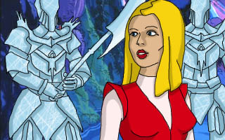 "It must only be shrouded from dark magic. I'm practically tingling with it," Willow noted, equally hushed as they slowly began the journey into the heart of the glacier. She glanced at Tara, and gently took her hand. "They didn't try to use you to find it?" she asked. Tara shook her head. "I was too young," she said. "This would have been six, seven years ago. My training wasn't advanced enough, I couldn't fully... come to grips with the ice magic. General Sunder took a more brute-force approach, in any case." "Do you think he's still at the mine?" Willow asked. "No - his posting here was purely temporary, to pacify the mountain area for the mining operation. Once his army had crushed the forces resisting us," Tara winced slightly at the memory, "he moved on. Last I heard there was a xenian commanding the mine." "Good thing or bad thing?" Willow asked. "From our point of view?" "Hard to say," Tara shrugged. "The Horde has far worse officers than Sunder - he's just efficient and loyal, not outright cruel. I don't know which xenian, but most non-humans who achieve rank in the Horde do it by savagery. Hordak encourages it. Are you alright?" Willow had paused, putting a hand to her temple. "I'm not sure," she said, closing her eyes. "I felt... something-" All of a sudden the ice beneath them heaved, throwing them both to the ground. Tara scrambled to her hands and knees, looking back as a wall of ice rose up behind them, sealing them off from the outside world. Another ice wall emerged in front of them, leaving them trapped. "That wasn't natural," Tara said warily, seeing Willow get to her feet, unharmed. The tremors that had accompanied the sudden rush of ice were subsiding into whisper-quiet rumblings, deep beneath the surface. "Someone boxed us in on purpose," Willow agreed. "But they didn't try to kill us..." She drew herself up to her full height, brushed some stray snow from the seat of her pants where she had landed, and placed her hand flat against the ice in front of her. "My name is Willow," she said, slowly and clearly, "sorceress of the Whispering Woods. We are from the Great Rebellion. We come here in peace and friendship, seeking an alliance against the Horde, who invade and plunder your land." "Anything?" Tara asked quietly. "Yeah, my hand's cold," Willow said out of the corner of her mouth. "There's no plant life around for me to talk to - if this doesn't work, do you think you can get us out of here?" "I have no intention of spending the rest of my life stuck in an ice box," Tara grimaced. "Even if the company is excellent." She leaned close to Willow and whispered: "I can think of a much better way to make certain parts of your anatomy get all hard and sensitive." Willow blushed as red as her hair, but her reply was forestalled by a thick mist emerging from the icy walls. "Willow?" Tara asked, as they were enveloped. She found Willow's hand, and held tight. "I think it's okay," the sorceress said warily. "It's not an attack, I think... it's some kind of transportation spell..." As if on cue the frigid mist dispersed into thin air, revealing new surroundings. Willow and Tara stared about, finding themselves in a huge cathedral-like hall, composed entirely of ice. Semi-translucent columns supported a vaulted roof high above, and on either side of a central path were two rows of ice statues - motionless, forbidding warriors. "Whoever lives here likes ice," Willow murmured. "Well what did you think you'd find," a voice from behind them echoed throughout the cavernous chamber, "in the domain of Frosta?"