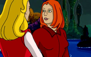 "I'm me," Tara agreed. "She-Ra is... something else. Being her is incredible, but... I want to be me. For you." She glanced down at her reflection in the water. "If you still-" "Don't even finish saying it," Willow said emphatically. "Tara... you never left my heart, and I loved you from the moment I first saw who you really are." "I feel like I'm only just starting to find out who I really am," Tara admitted. "Can we find out together?" Willow offered. Tara looked up at her, smiling radiantly. "I love you," she whispered. "That's who I am. The rest..." she nodded, "yes, we'll find out together." Until next time... ![]() "Hi there! It's me, Dawnie. Did you find where I was hiding today? If not, take another look: ![]() "In today's adventure, it seemed like Willow had lost Tara forever. But she believed in Tara's goodness, no matter what, and in the end that was what saved Tara from Shadow Weaver's enchantments, and brought her and Willow back together. I'll see you all next time, bye now!" ![]() ![]() |