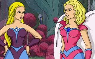 "What the hell are you?" Faith growled, starting to change into her animal form again. Tara lifted her chin. "I am She-Ra," she pronounced. "Whoever you are, you're dead!" Faith roared, leaping over Willow and Buffy's head. She was a panther again by the time she reached She-Ra, claws outstretched, but the angel caught her forelegs and swung her around, hurling her with bone-jarring force into a wall, which collapsed around her. Faith shook off the debris, seeming more enraged than hurt, and leapt at She-Ra again, avoiding her grasp this time and sending them both toppling to the ground. Faith swung herself atop She-Ra and lunged at her throat, only to find her jaws held open. She roared and flexed her muscles, but couldn't budge She-Ra's grip on her muzzle. With no warning she changed again, becoming human. She-Ra lost her grip, and Faith used her momentary surprise to close her thighs around She-Ra's arm, wrenching it sideways, intending to break it. Instead She-Ra twisted her body over, hurling Faith into the air, and flipping to her feet just as her opponent was crashing back to the ground in a tangle of half-changing limbs. Faith scuttled back, seeking high ground, turning to face She-Ra on the top of the ruined battlement. With a snarl she settled into a half-human, half-beast form, and as She-Ra advanced on her, she gripped a chunk of fallen stone, lifted herself up on her hind legs, and threw the rock at Willow and Buffy. She-Ra leapt between it and them, shielding them with her body - the boulder crashed into her back and thudded to the ground, and by the time she had looked back, Faith was gone. "Damn," She-Ra muttered, standing upright. "Buffy needs help," Willow said. She-Ra nodded, and picked Buffy up with little apparent effort. "Okay," Buffy said as they started back towards the edge of the ruins, "hi, then. Willow?" "This is She-Ra," Willow shrugged. "She's Tara, kind of. It's a-" "Long story, right," Buffy nodded. She-Ra chuckled, and gave Willow a smile that was pure Tara. ![]() Deep in the Fright Zone, Hordak watched dispassionately as, chained in a pit beneath him, Faith struggled against her bonds. A crackling discharge of electricity surged through the pit, tearing a tormented scream from her throat, and casting an eerie glow on her master's steel face. "She did not have the power to prevail," the Shadow Weaver rasped, emerging from the dark behind Hordak. "She failed, she suffers," he replied without taking his eyes off the struggling woman. "It is proper." Another surge of power passed through her prison, assailing her brutally in the seconds it took to dissipate. Hordak nodded in satisfaction, and turned to his witch. "I am, however, surprised that you returned," he growled. "She-Ra! You know what this means? Why should I not have you killed for this outrage?!" "Because should you try, you'll find I am no easier to kill now than I was the first time you did it," Shadow Weaver spat back. "That cost you greatly." "I am no stranger to hardship," Hordak glared. "Given your utter failure-" "And," the witch interrupted, "I assure you there is no way for you to dispose of me quickly enough that I will not be able to inform Horde Prime of today's events. You refused to kill Tara, when you knew the risk she posed." "You dare threaten me?" Hordak snarled. "In this, as in all things, we are partners," Shadow Weaver replied. "We would both die... or, if we maintain our 'partnership', we both live." "Partners," Hordak hissed. "The power of She-Ra nearly destroyed me once! I was a fool to believe your promises to tame it." "All is not lost," Shadow Weaver said calmly. "Your enchantments have failed," Hordak accused. "Tara is lost to us, her path into the Whispering Woods is closed to us, and above all the Rebellion has the greatest power on this world!" "That power may be regained!" Shadow Weaver insisted. "Tara is lost... but she is not the only one who may wield the sword of She-Ra." Hordak blinked in surprise, then glanced back at the pit, where Faith was enduring her torture. "She cannot," he frowned. "You said so yourself. That scheme was a failure." "She could never have awoken She-Ra's power," Shadow Weaver replied. "But now that it is alive again, there is a chance that Tara's twin - imperfect as she is - can wrest the power from her. And wield it for us." Hordak stared thoughtfully at Faith, as another wave of pain washed over her, burning her skin where it touched. "Perhaps," he allowed. "But never forget... allies we may be, but there will be a reckoning for what you have cost me. Perhaps Faith will capture and wield the power of She-Ra, and you will think Tara's loss of no consequence. But I will not forget. One day, you will know my anger." "One day," Shadow Weaver agreed calmly. "We shall see." ![]() Willow found Tara sitting on the steps behind her house, staring at the reflected starlight in the lake. "Glimmer?" the blonde asked.
