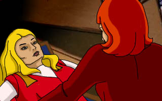 It was comforting, at first - close around her, but nurturing, soothing. She let herself be held, and abandoned worries and cares and thoughts. She listened to her heartbeat, lulled by the steady rhythm, growing slower, smoother, quieter. She stirred. Suddenly the darkness was too close, too confining. She fought against it, but it held her tightly, not letting go. She tried to scream, but there was nothing around her to carry sound, no air to breathe except the dark, which left a sickly sweet taste in her mouth as she involuntarily inhaled it. "Willow..." Willow struggled with all her strength, thrashing from side to side in a vain effort to escape the force that covered her, and was slowly consuming her. She cried in fear and impotent rage as it seeped through her skin, and began to settle inside her, slowing her struggles. "Willow?" She was trapped inside her own body, forced into compliance as her mind raged. "Willow!" ![]() Willow woke with a gasp, clutching with one hand at the bedsheets, the other wrapping firmly around the waist of the woman nestled beside her. She blinked in the dark, fearful for a moment that the nightmare had found a way out of her dreams and had enveloped her in reality, but then she felt Tara's hand stroking her brow, and slowly her eyes adjusted to the faint blue moonlight of the very early morning filtering through the windows into her home. "Willow?" Tara asked, holding her gently. "Are you alright?" "I... yes," Willow said automatically, steadying her breathing. "You looked like you were having a bad dream," the blonde said. "I thought, maybe I should wake you?" "Thank you," Willow sighed, relaxing her tense muscles, settling into Tara's embrace. "I'm alright... I have odd dreams sometimes, it's part of the magic. Nothing to worry about." "Are you sure?" Tara prompted gently. "You seemed so afraid... I was getting scared," she finished, with a self-effacing chuckle. "I'm fine," Willow assured her. "And I didn't mean to upset you..." "No, you didn't," Tara assured her in turn, "it was just... We don't really have to go in circles apologising to each other, do we?" "I guess not," Willow laughed, feeling pleasant warmth seeping back into her body. She sighed again, peacefully this time, and rested her head on Tara's shoulder. "How are you feeling?" she asked quietly, after a moment listening to her and Tara's breathing. "Never better," Tara whispered, hugging the redhead to herself. "It's only the first time that-" Willow began. "I know," Tara cut her off, with her smile audible in her voice, "you told me already... and it was only for a moment. It was worth it." Her voice took on a dreamy quality. "You, inside me... inside me..." Her voice trailed off into a satisfied murmur. "Mmm," Willow agreed, shifting her body to snuggle closer to Tara. "Willow?" Tara asked. "Yuh?" Willow mumbled. "If you're not too sleepy, do you think we could... um, again?" "Mmm-hmm," Willow smiled, kissing Tara's shoulder. "Definitely..." "Mmmmmm," Tara purred, as Willow's lips slowly descended. ![]() Afterwards Willow slept soundly the rest of the night, and when she woke sunlight was streaming through the windows. She felt Tara moving beside her, realising that was what had woken her, and turned to see the blonde sitting up, sliding her legs out from beneath the covers. "Morning," she murmured, admiring Tara's naked form. Tara turned, Willow's gaze travelled up from her abdomen and chest, up her neck, settling on her face... where her eyes were pitch black, staring emotionlessly down at Willow from beneath frowning brows. "Tar-" Willow managed to get out, before the back of Tara's clenched fist cracked across her temple. The sorceress's head slumped sideways on her pillow, and Tara quickly stood and assessed her surroundings. She started towards her clothes, which lay discarded in a trail leading from the couch to the bed, but before she had gathered up more than her boots a knock sounded at the front door. "Will, you decent?" Xander's voice called. Tara hesitated for a second, then as the door handle began to turn she turned and ran, snatching a cloak off a hook on the wall as she reached the back door and shouldered it open, taking the steps at a run and not breaking stride as she reached the end of the small stone extension and dived into the clear lake, vanishing beneath the mist-wreathed water just as a clatter of an overturning chair and a yell of dismay sounded from inside the house. ![]() Xander dipped a thick cloth in a bucket of slowly melting crushed ice, and then pressed it gingerly against Willow's temple. The sorceress winced involuntarily, but accepted the care, while beside her she sunk her fingers a little deeper into the ground. Buffy appeared, vaulting over the river oak's huge sprawling roots. She skidded to a halt and sank to her knees at the sight of Willow lying on the ground in front of her house, with Xander's cloak rolled up beneath her head as a makeshift pillow. "I just heard," she said, glancing between the two of them. "Willow, are you-" "I'm fine," the redhead muttered. "Well, not 'fine', obviously, but nothing I can't recover from... ouch, though." "Xander?" Buffy asked. "The prisoner?" "The rangers are going after her," he said grimly. "But it looks like she swam - she could have a decent lead before we get riders across to the other side of the lake." "How did she do it?" Buffy asked Willow. The sorceress glanced up at her, steeling herself, then closed her eyes. "I let her go," she said glumly. "Well- you what?!" Buffy exclaimed. "What do you mean you let her go?" "I don't mean to escape," Willow replied, "just... They had her under a spell, some kind of enchantment, Buffy - she's not like them, she's not Horde! We talked what felt like half the night, and she's..." She paused, lost for words. "Wait, what enchantment?" Buffy asked guardedly. "The Horde has a witch, attached to Hordak - Tara told me-" "Tara?" "Her name's Tara," Willow continued.